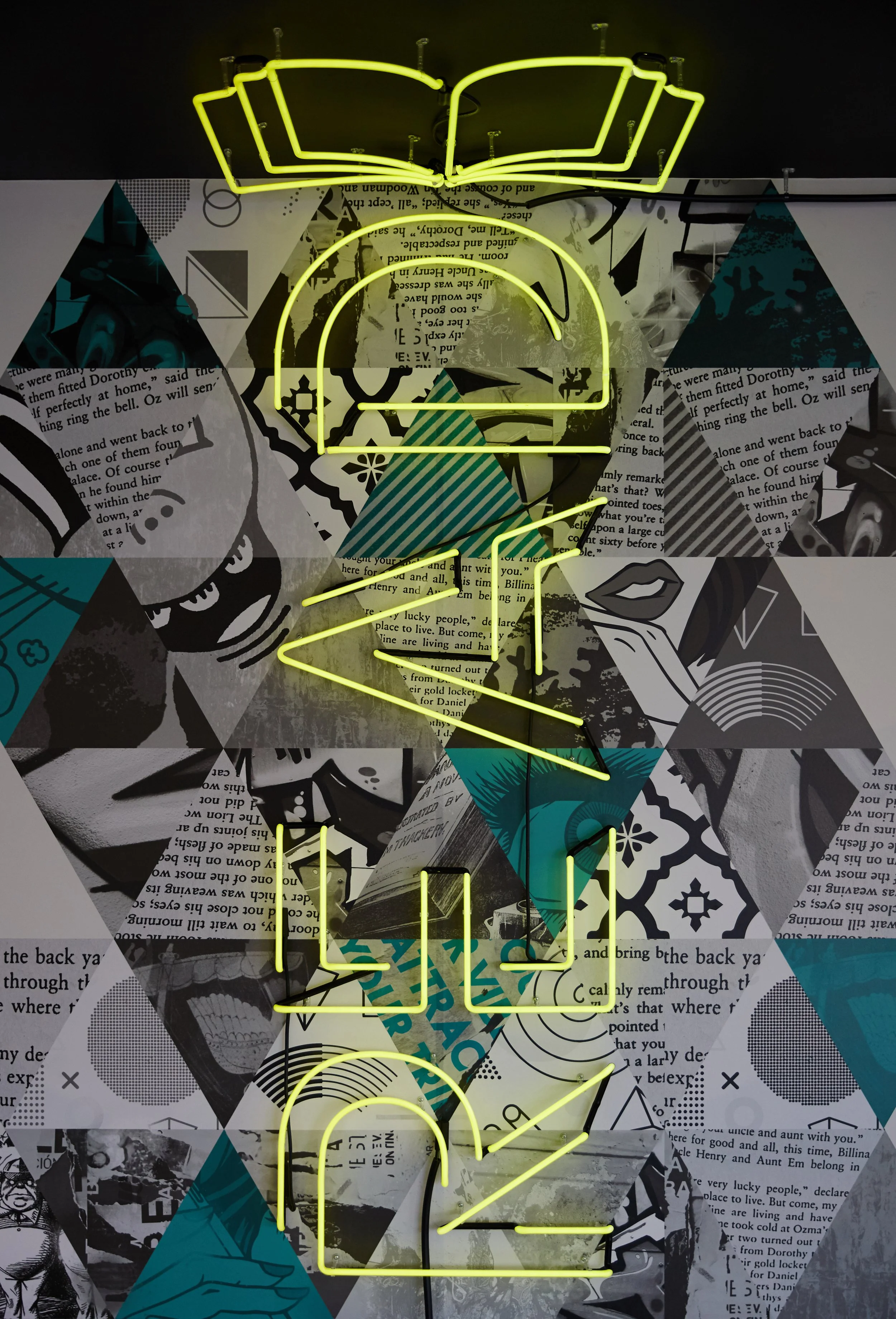 Designed an oversized "READ" neon sign with a vertical book icon, creating a bold visual focal point and social media activation. Set against black ceilings, the neon added a youthful, modern touch, complementing the custom graphic wall and elevating the pop-up's overall aesthetic.